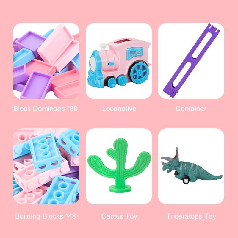 - Product List:Train*1 + Dominoes*80 + Building Blocks*48 + Cactus*1 + Card Holder*1 + Triceratops*1